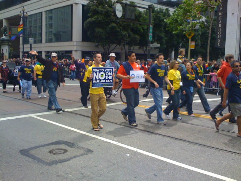 There were the usual staples of the San Francisco Parade, the Rainbow flags, the shirtless muscled men, the drag queens and the dykes on bikes, but this time there was something more.