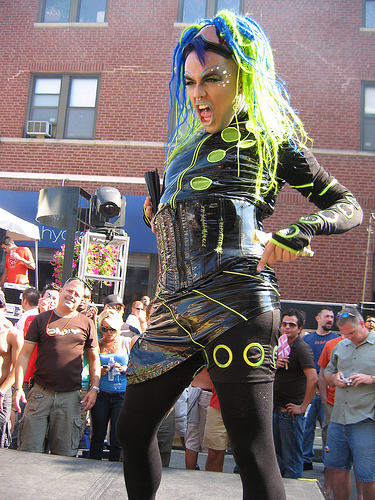 Sal-E works ferociously as a cosmetologist at Milio’s Hair Salon in Chicago, Illinois. Born and raised in Chicago’s northwest-side he quickly developed a reputation for creating original costumes that are inspired by found objects and result in a wide variety of looks. From a psychedelic baroque monarch to a heroic comic book figure Sal-E is one of the most requested nightclub personalities and is seen everywhere on extreme make-up photo galleries.
