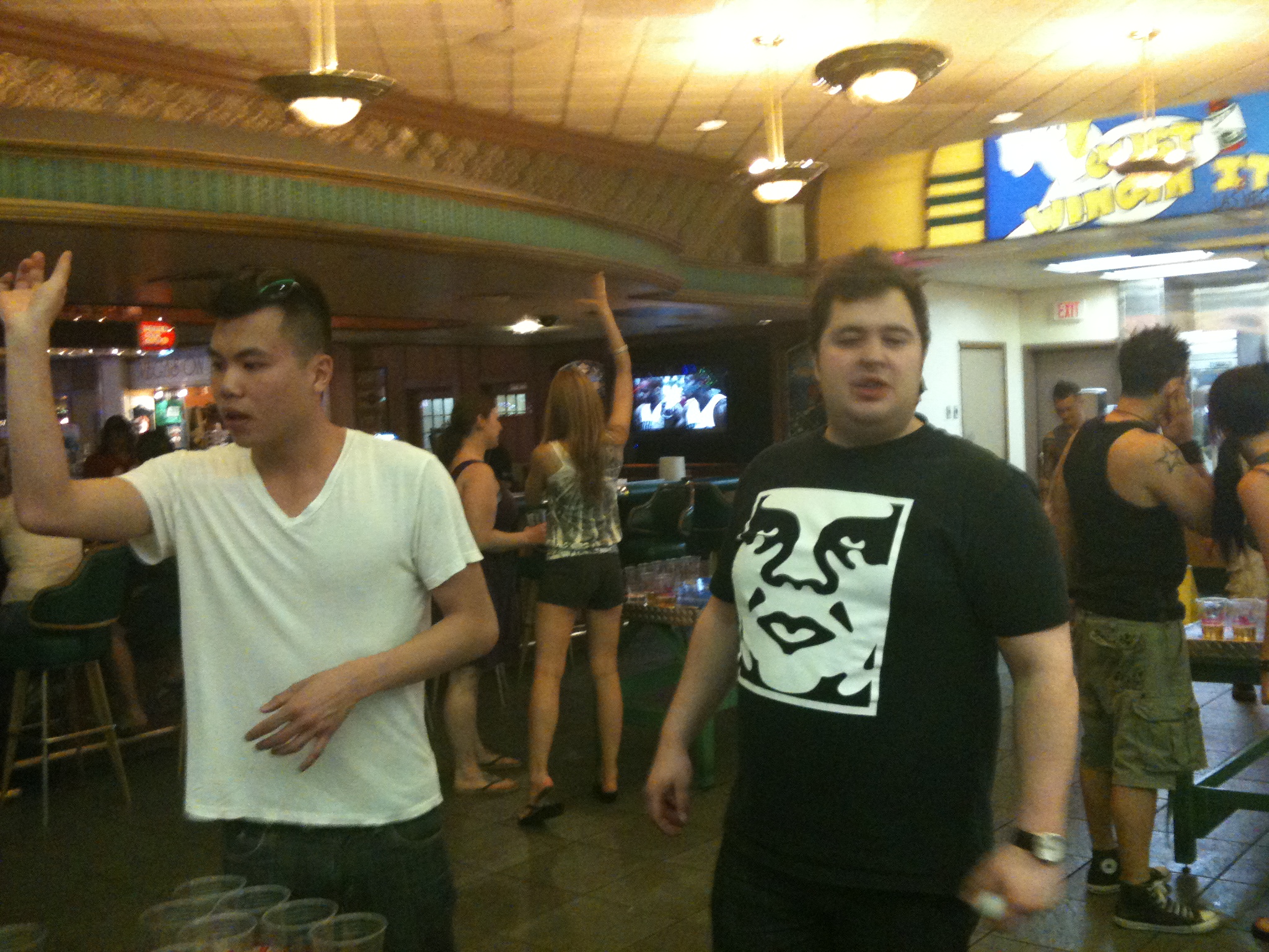 After bowling some of us went to O’Shea’s and played beer pong. That was my first time playing that game. I was teamed up with my boss. We had all bonded by that time so playing a game where drinking every time you are in a losing position made this more fun. We won a game and lost more, so you can imagine how much drinking I did and how drunk I became. Let’s say my colleagues know me more than ever now. During the game, they kept telling me not to get distracted ( referring to the Jersey Shore Muscled dudes with tattoos playing behind our tables).