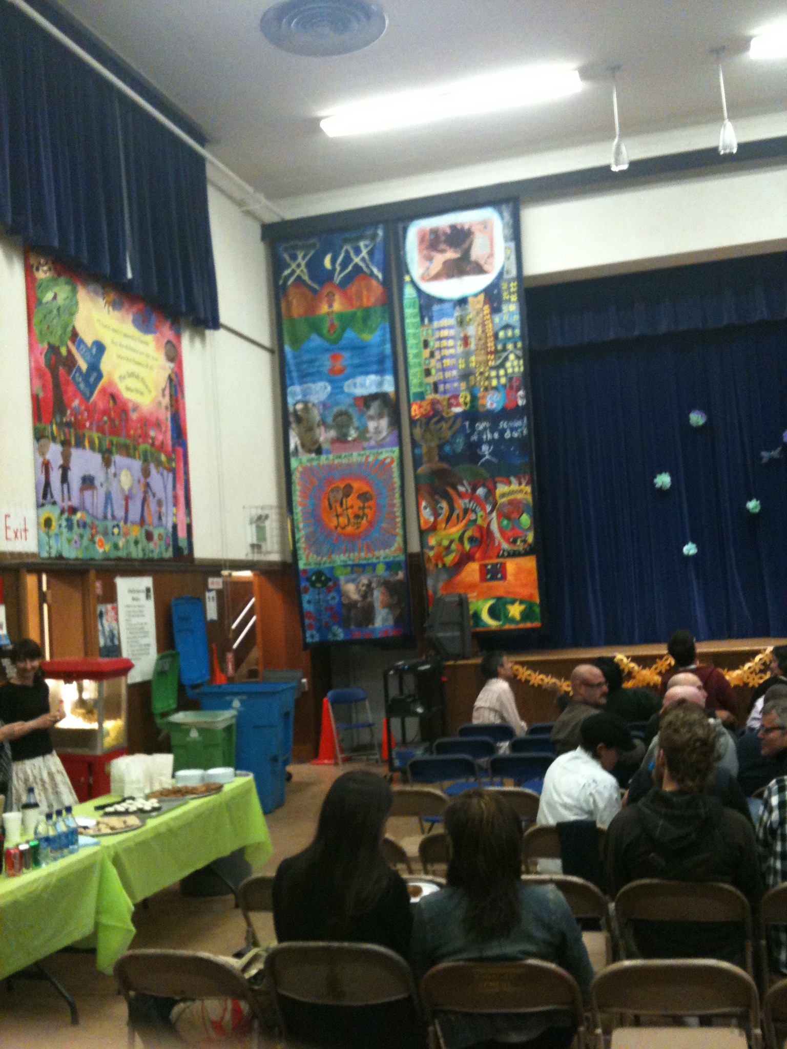 First it was like that kind of weird dream you get after eating junk food right before sleep at night. Here were drag queens walking around a school auditorium while parents ran a bake sale in the corner with art by school children,acting as backdrop, adorning the walls.