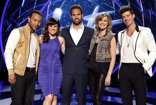 Duet Judges and Host: L-R John Legend, Kelly Clarkson, Quddus, Jennifer Nettles, Robin Thicke