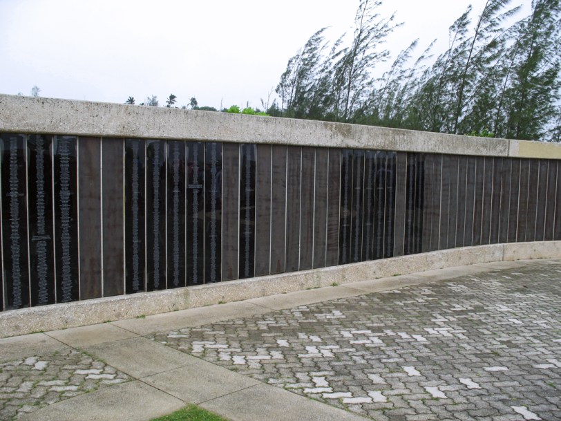 Guam War Memorial : This Memorial Wall has 16,142 names that are US Marines, Soldiers, Sailors, Airmen, Coast Guardsmen, and the Chamorro People of Guam who died or who suffered personal injury, forced labor, forced march, or internment as a result of the Occupation of Guam.