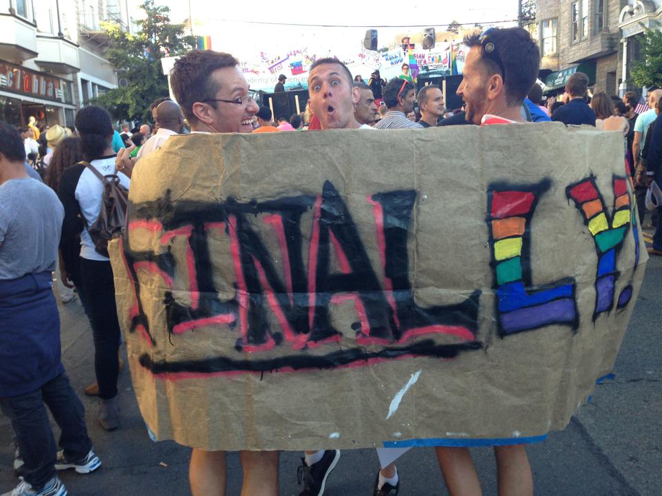 Pure joy reigned on the streets of San Francisco, as friends, old and young, male and female, straight and gay, Republican and Democrat, Christian and Atheist, and all those united in equality celebrated in dance, song, hugs and tears. I was there to see it. I am here to live it.