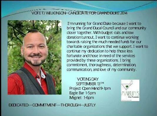 T.J. Wilkinson has also been involved with different parts of the LGBT and general community in which allows him to continue to bring new resources, new awareness and more funding to the charities. The vision and focus of his campaign has been centered on that very thing. Every thing that he has learned since that first volunteer duty he took for the ducal council as accumulated and has prepared him for this role. He is ready for it. I believe we are ready for him.